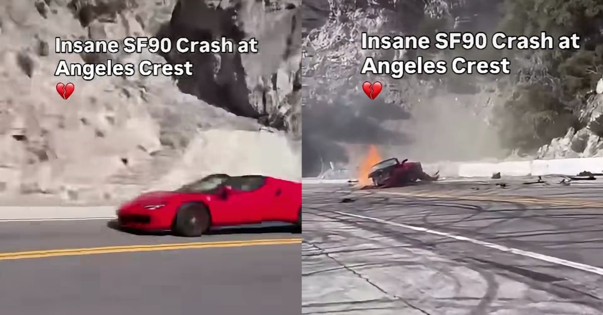 知名射擊遊戲《決勝時刻》設計師贊佩拉車禍身亡,其法拉利撞擊起火畫面曝光。(圖/翻攝自IG@teddy.tarantino)