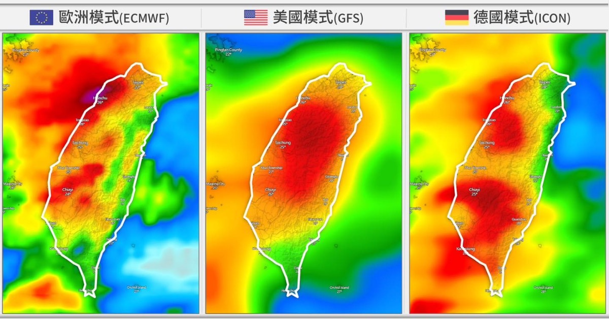 氣象粉專「台灣颱風論壇|天氣特急」發文指出,乾熱好幾天之後,最新一波春雨,即將在週四來臨,將一連三天全台有雨,根據各國模式的最新雨量預報,三家預測都是全台紅通通,尤其是西半部預期雨量不少,在主流模式預報共識很高的狀況下,變數已經不大。