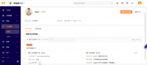 「AI員工」可以理解為外貿企業7*24小時工作的「智能外貿從業員」,在日常外貿場景下,AI員工可以幫外貿企業高效完成工作。對於一個典型的外貿企業,通常會有新客戶獲取、針對老客戶的新產品營銷、跟單、財務收款等角色分工,不同的角色分工涉及不同的工作目標及能力要求。而AI員工則可覆蓋獲客和營銷層面的角色能力,當外貿企業老闆為AI員工設定好工作目標後,AI員工可以根據目標分析任務、制定計劃、並自主調取「安信成CRM」平台的客戶管理工具。此外,作為「安信成CRM」的一項AI數智化工具,AI員工在完成目標工作後會進行總結匯報,每天的工作記錄也會全部記錄在「安信成CRM」系統中,供外貿管理人員隨時調取查閱。由此,大大提升外貿企業的拓展業務效率,外貿業務員或者外貿SOHO公司(Small Office and Home Office)可以把更多的精力花在把意向潛客轉化成訂單。
