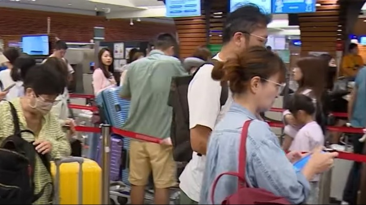 清晨5點多,報到櫃台前,大批旅客提著大包小包推著行李,準備搭機前往「九州」好好放鬆。不過臉上表情除了喜悅,還多了點「擔憂」。搭機旅客:「原本昨天很擔心,因為有說新幹線停駛,那後來就還好,因為它上面寫說它只有暫停營運。」