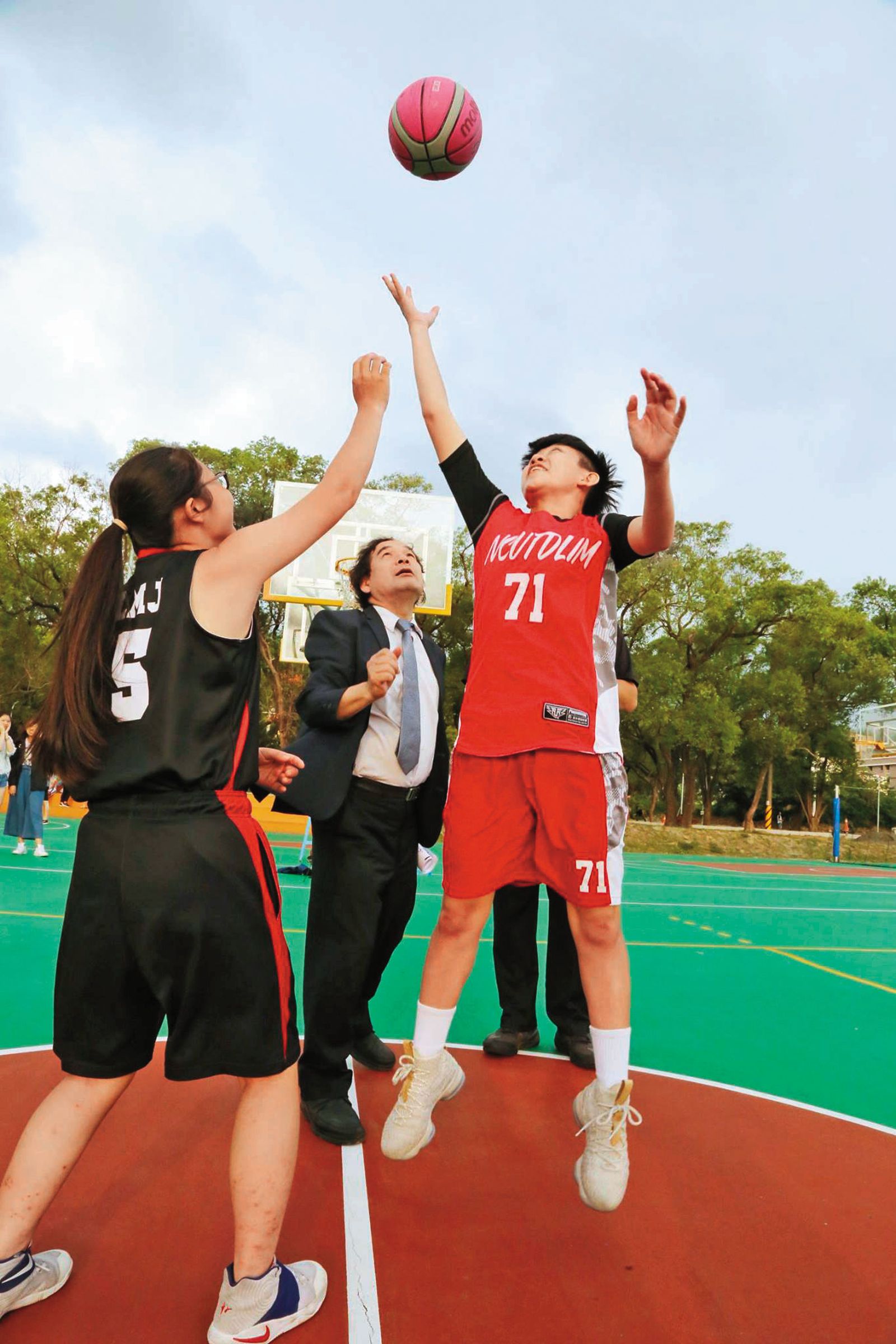 陳文淵(中)除了是勤益科大校長,也是電子工程系教授,與學生互動親切。(圖/翻攝自 勤益新聞網臉書/鏡週刊)