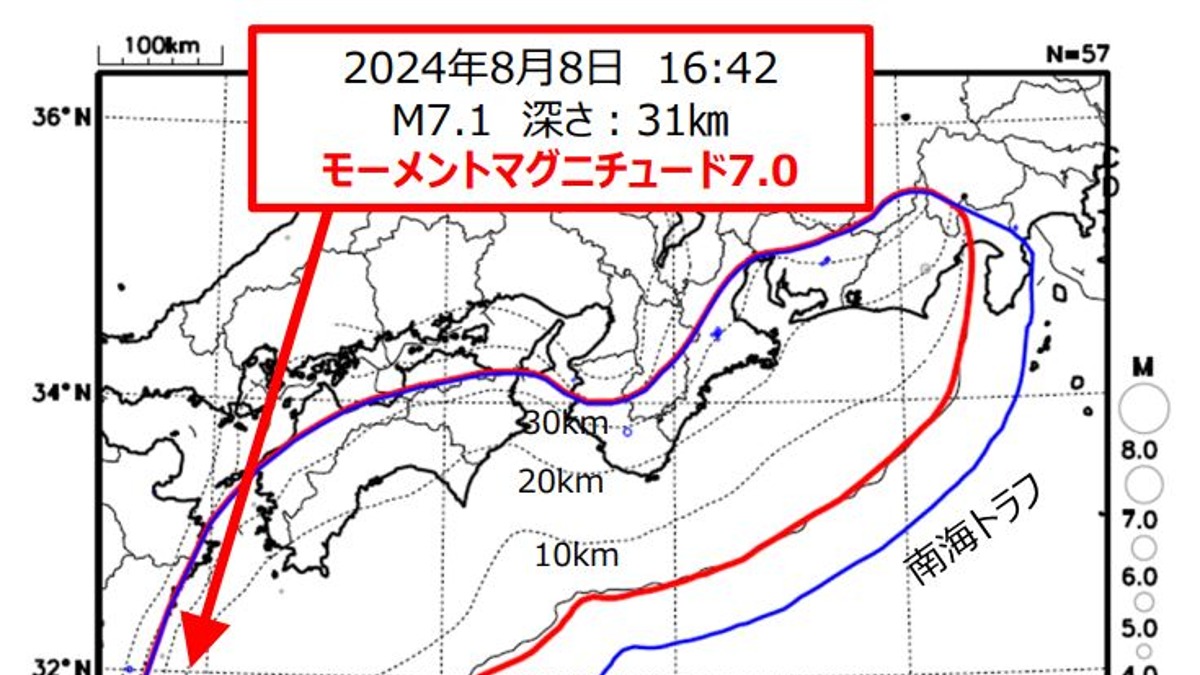 日本時間8日下午4時42分(台灣時間3時42分)左右,宮崎縣南部觀測到規模7.1地震,震央在宮崎縣外海的日向灘。氣象廳表示,截至12日,南海海槽假想震源區內觀測到震度1以上的地震共有23次。