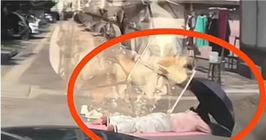 中國近日一種養生方式「曬背」引發熱議,豈料近日在蘇州張家港有名女子竟在路上鋪著瑜伽墊,撐著遮陽傘悠閒的在路上趴著曬背,結果被一輛經過的汽車撞上,所幸經過醫院診斷,受傷女子是肌肉損傷,腿骨並無大礙。對此,警方做出事故鑑定,轎車駕駛因疏於觀察負事故主責,受傷女子則承擔次要責任。