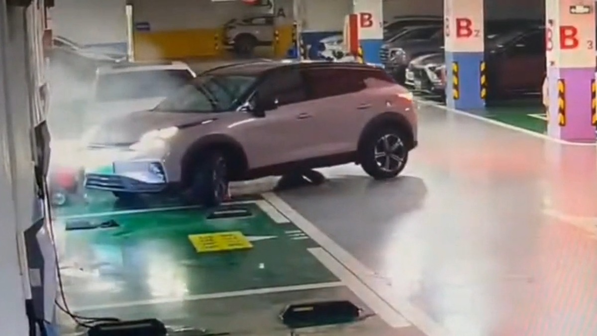 23號在大陸深圳,有女子開車到地下停車場,多次側邊停車都沒有成功,而因為固定在地上的輪擋卡住了輪胎。女子為了要持續後退,油門大踩之下,整輛車往後暴衝,現場冒出白煙;還好最後女子趕緊踩煞車,但是牆壁跟車子,恐要面臨高額的維修費用。