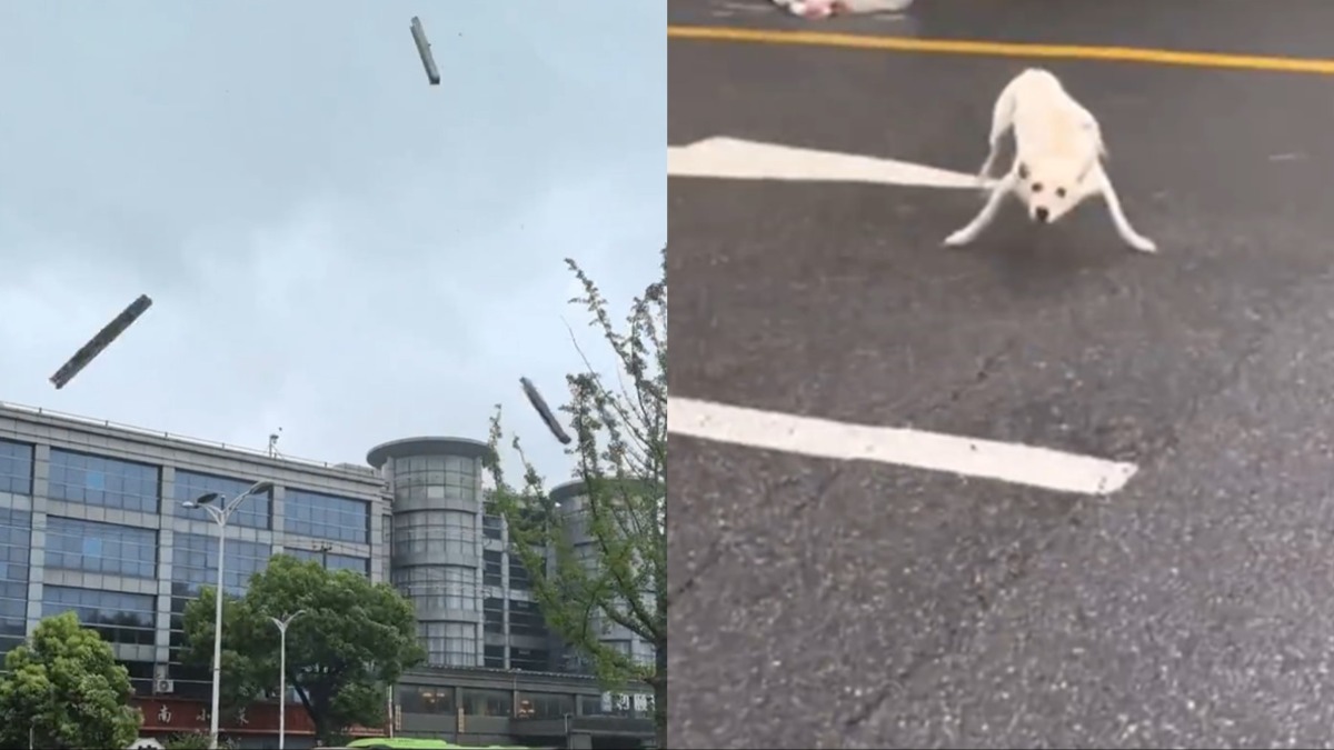 貝碧佳颱風登陸上海浦東,狀況頻傳。(圖/翻攝自首都一橘微博)