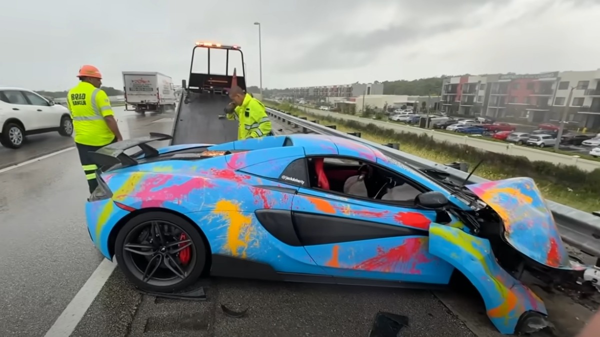 Jack Doherty just crashed his brand-new McLaren while streaming, looking at his phone, and driving in bad weather...