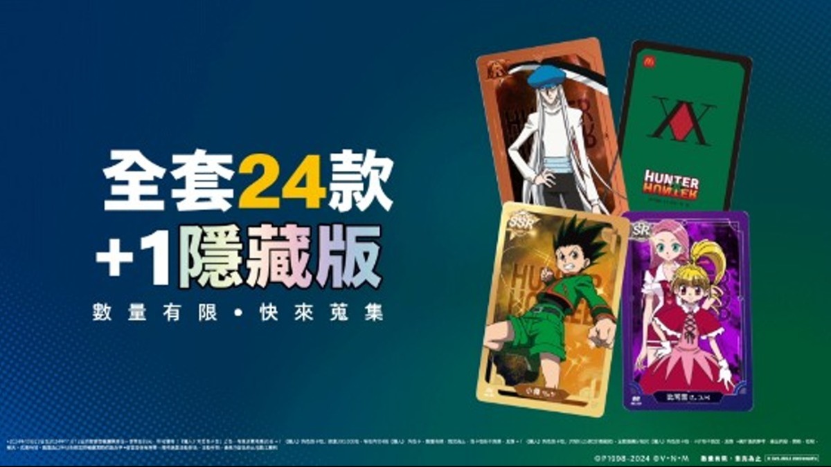 麥當勞與人氣動漫《獵人》聯名推出的動漫祭活動引發熱議,除了限定包裝外,還推出了角色盲卡包與BOOK牌。自23日起,消費者購買任一食品加89元即可獲得一包角色卡,每包包含4張,總共發行25款。至於BOOK牌,則從30日起,只要購買任一分享盒並搭配指定飲品買一送一即可獲得。