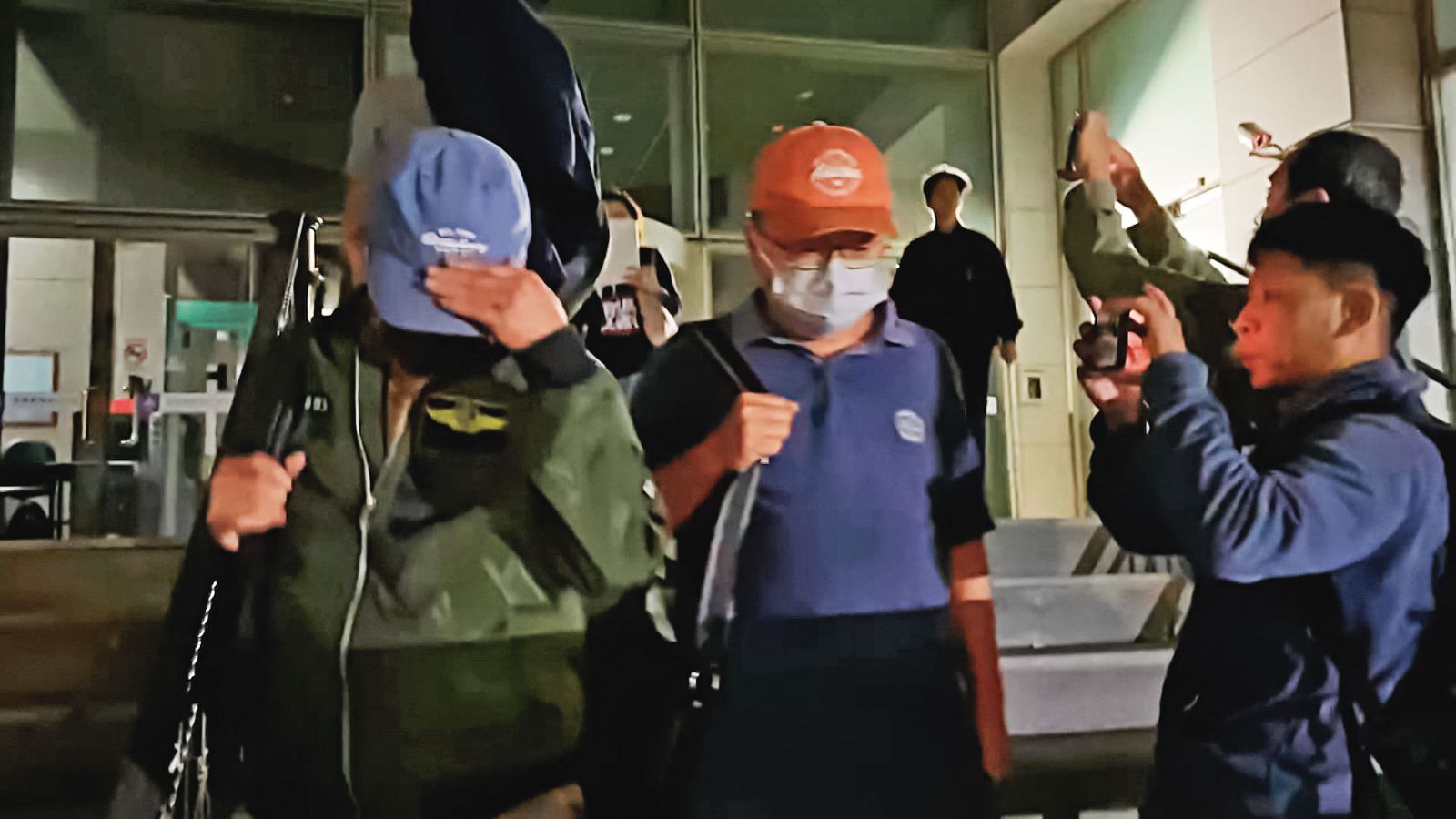 陳啟昱(紅帽者)22日遭南檢聲押,隔日清晨獲院方裁定無保請回,檢方抗告成功,已發回台南地院重新審理。(圖/鏡新聞提供/鏡週刊)