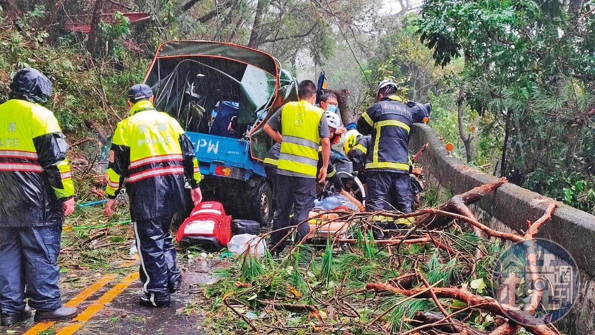 颱風期間一輛小貨車行經合歡山公路,女乘客慘遭路樹壓死。(圖/讀者提供/鏡週刊)