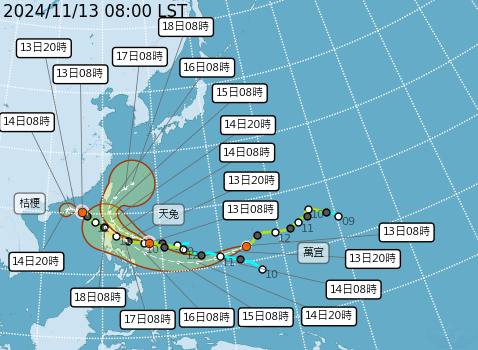 中央氣象署評估,天兔將在周五(15日)至周六(16日)最接近台灣。(圖/翻攝自氣象署)
