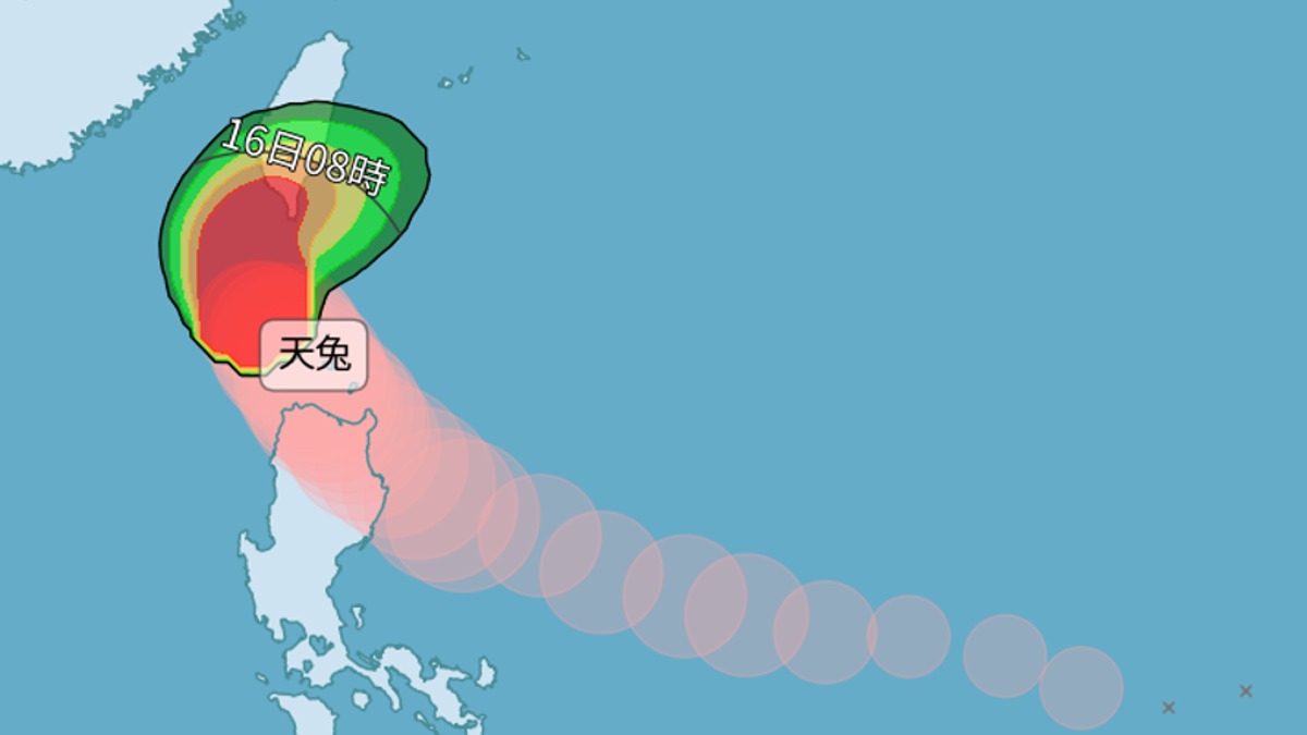 中央氣象署表示,天兔今(15日)上午9時距離鵝鑾鼻南南西方約190公里處,並以每小時11轉8公里速度,朝北轉東北前進,預估未來對花蓮以南、台南以南地區造成影響。