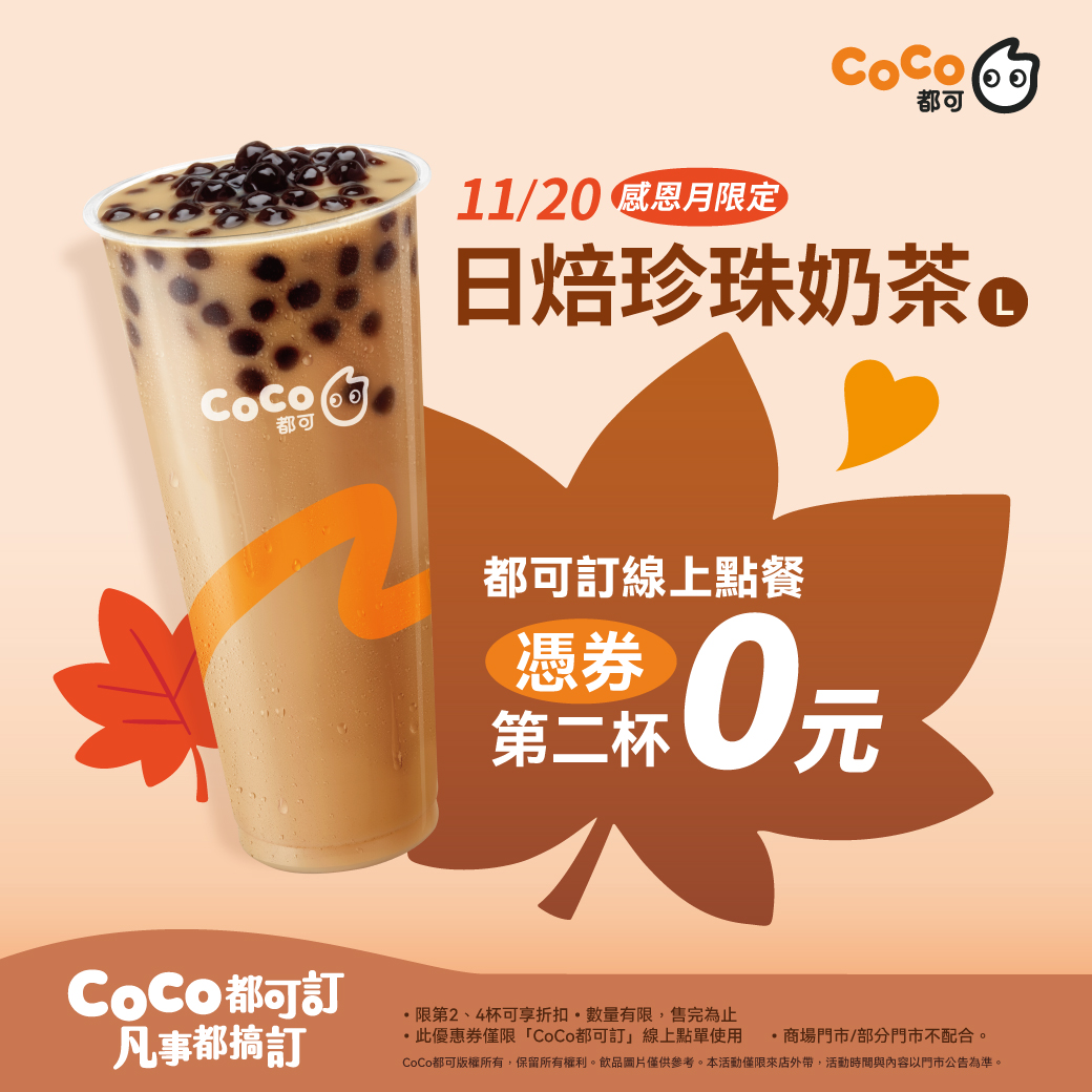 中華隊在12強預賽2:0完封古巴,CoCo都可推出今日(11/20)限定優惠,使用「CoCo都可訂」線上點單,購買日焙珍珠奶茶(L),憑券第二杯0元,11/20 00:00 開始領券,第2、4杯可享折扣。