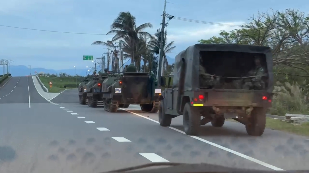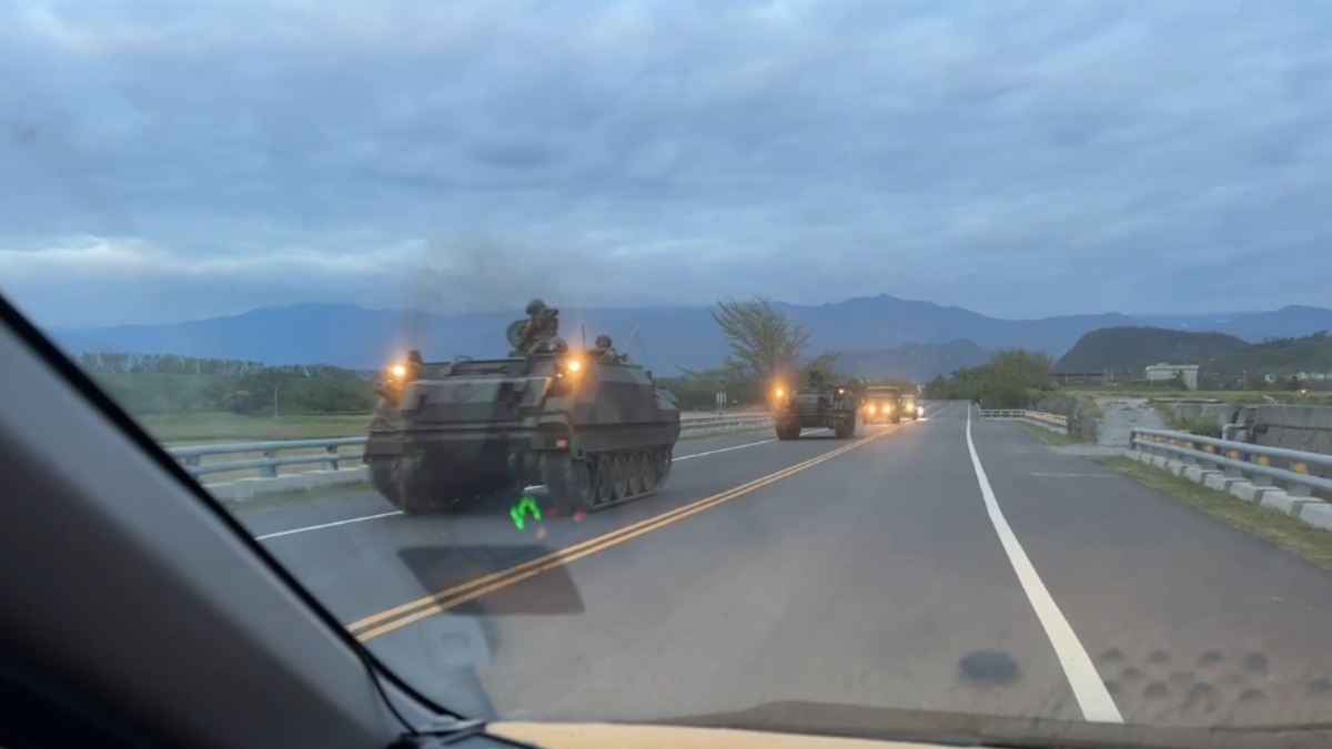 裝甲車和軍用吉普車出現在省道。(圖/東森新聞)