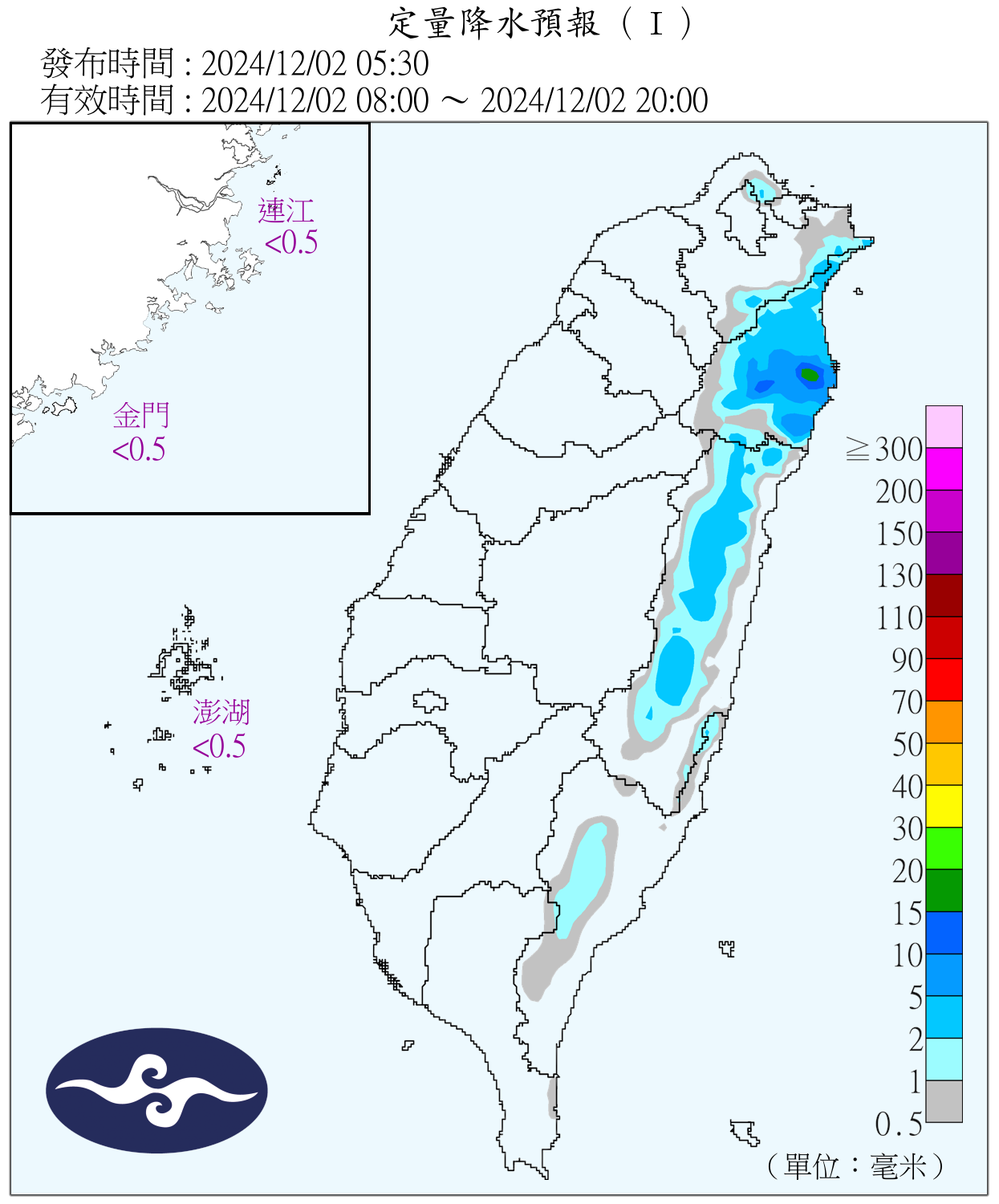 12/2定量降水預報。(圖/氣象署)