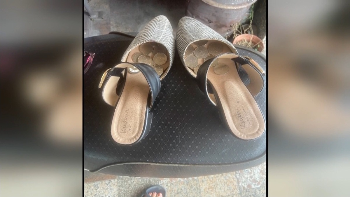 屏東一名美甲店的老闆娘,最近放在自家門口的鞋子,都會被不明人士偷塞10元硬幣。(圖/東森新聞)