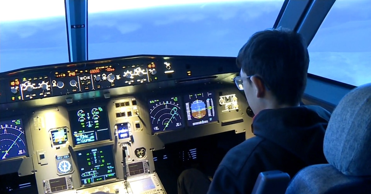操作儀器在空中飛行,朝陽科大航空系的學生在駕駛艙內,模擬南韓重大空難遭遇到的各種狀況。飛行過程中,情境模擬遭遇鳥擊導致單發動機失效,警報聲立刻大響。
