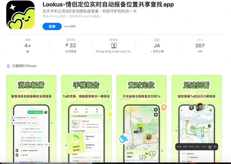 網友找到一款APP「Lookus」宛如現代電子腳鐐。(圖/APP Store/CTWANT)