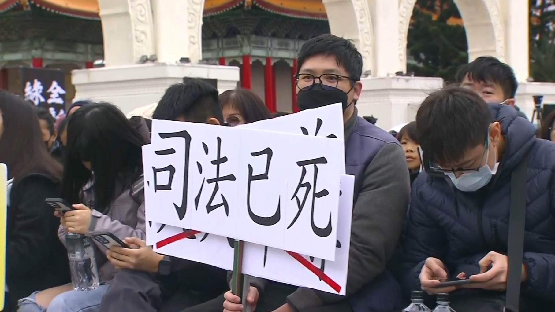 民眾黨號召民眾抗議司法不公舉辦「111釘孤枝」集會遊行,地點選在中正紀念堂自由廣場,截至下午1點半左右約200人到場,預計還會有越來越多民眾到場,事實上因為近期司法議題浮上檯面,很多民眾都對司法正義打上大大的問號,民眾黨因此號召民眾上街聲援,現場除了宣講的講台之外,也自組糾察隊觀察現場是否有違規情形,違規者將被請離現場。