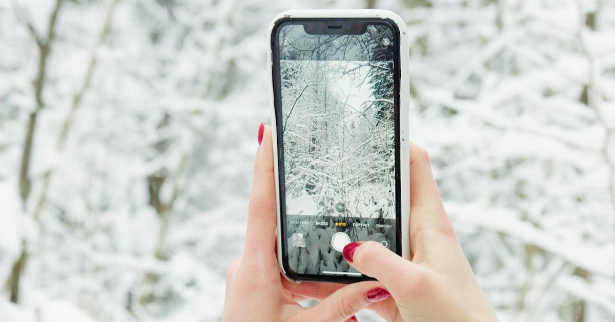網友想在雪地裡自拍美照,用雪當腳架,但下一秒輕輕一放,手機瞬間不見。(示意圖/Pexels)