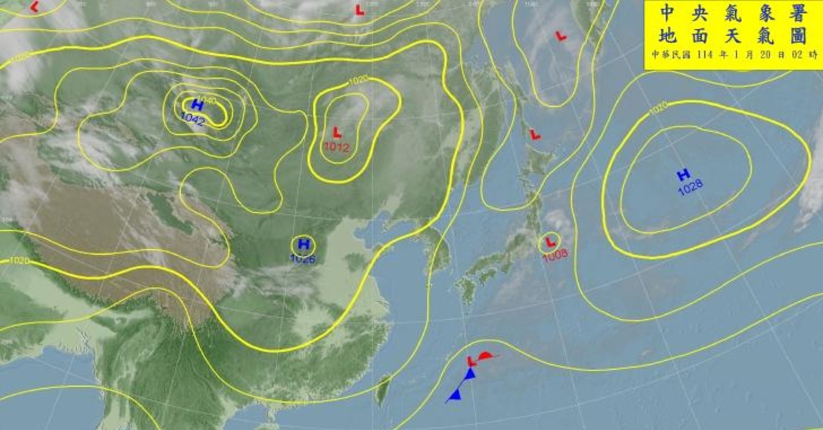 今(20日)來到二十四節氣中的「大寒」,是一年中最冷的時日,加上冷空氣升級為強烈冷氣團,各地天氣偏冷。(圖/氣象署)
