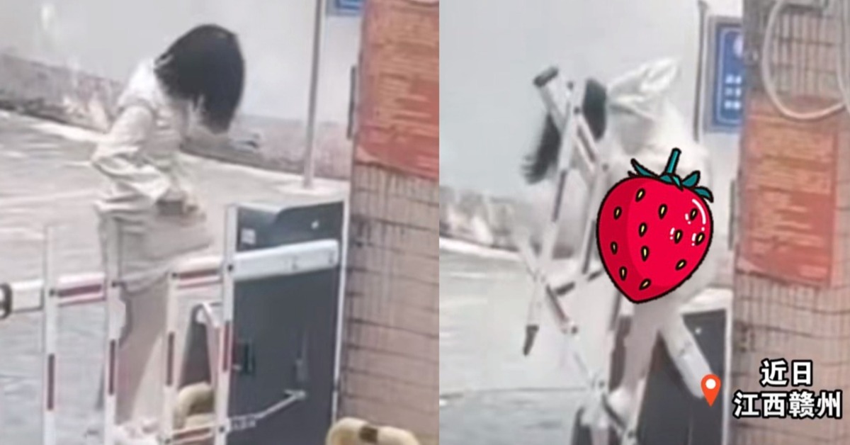 陸媒《羊城晚報》報導,10月12日,這名穿著長裙的女子在社區的電動式柵欄前,因為被攔住無法向前,而她選擇直接翻越,這時恰巧有住戶經過,臉部辨識後啟動機械,女子被升起的欄杆卡在空中,無法動彈。
