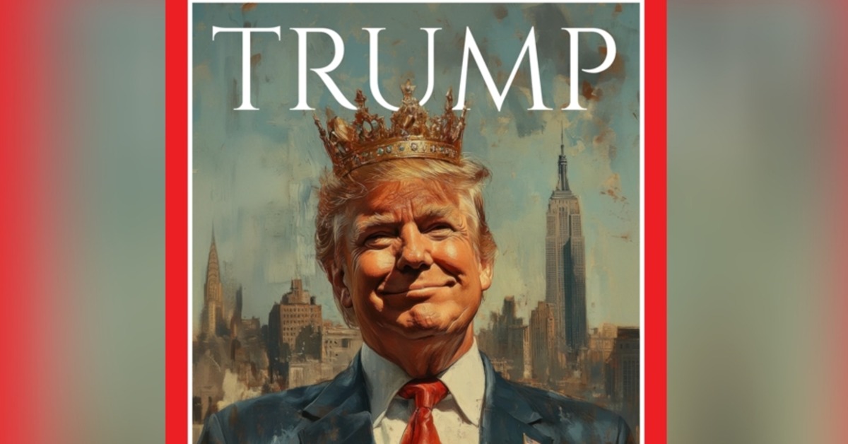 美國總統川普在社群分享「頭戴皇冠」的貼文。(圖/翻攝自白宮X)