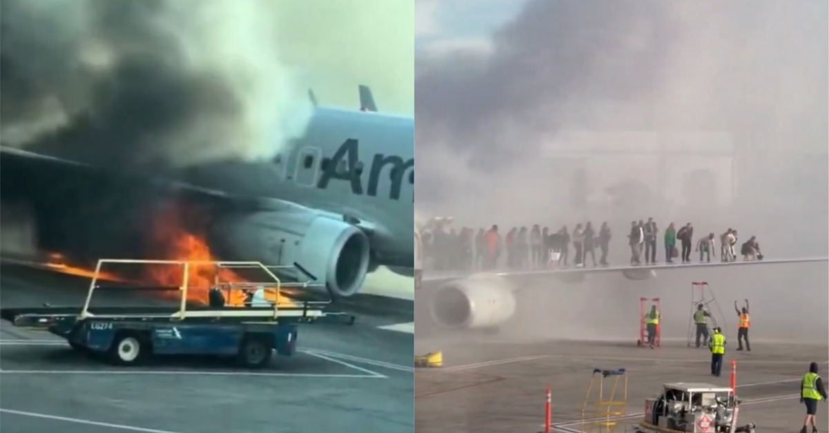 BREAKING: An American Airlines plane caught fire at Denver International Airport forcing passengers running.