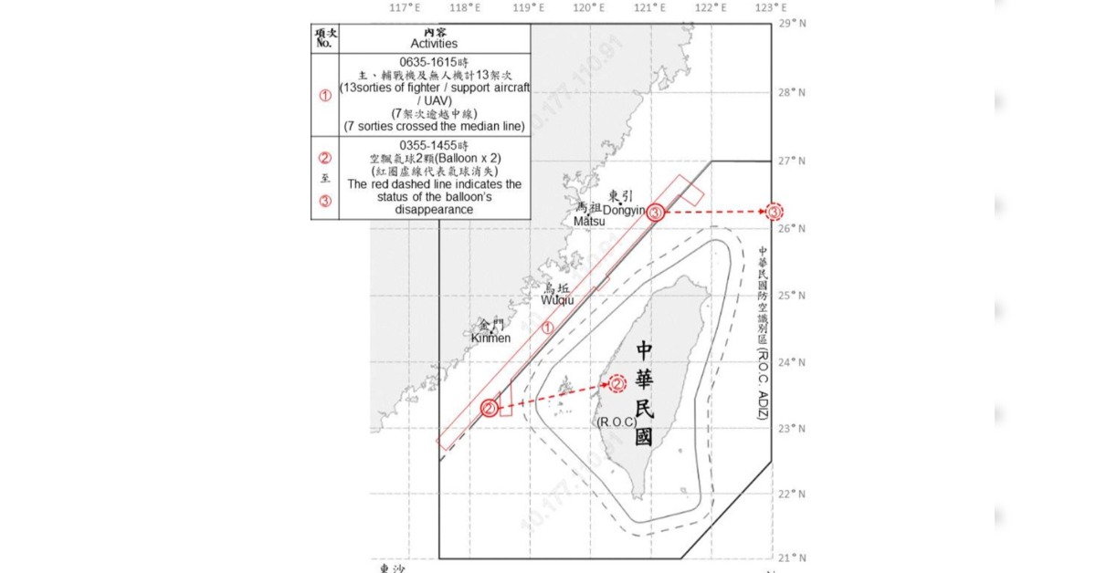 台灣國防部17日陸續偵獲數十架次共機逾越海峽中線及其延伸線。(圖/翻攝自國防部即時軍事動態)