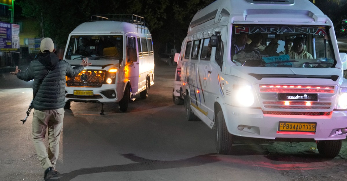 印度北部克什米爾地區22日發生恐攻,當地警察進行攔查。(圖/美聯社)