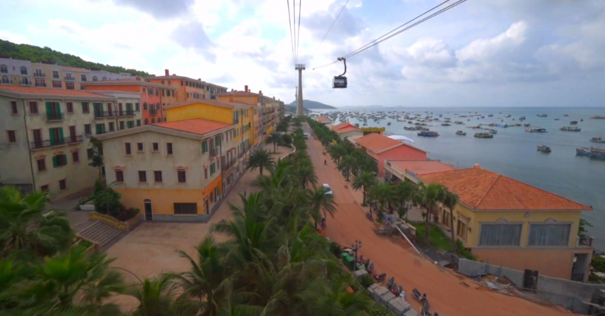 越南富國島纜車上悠閒飽覽美麗的海天一線。(圖/東森新聞)