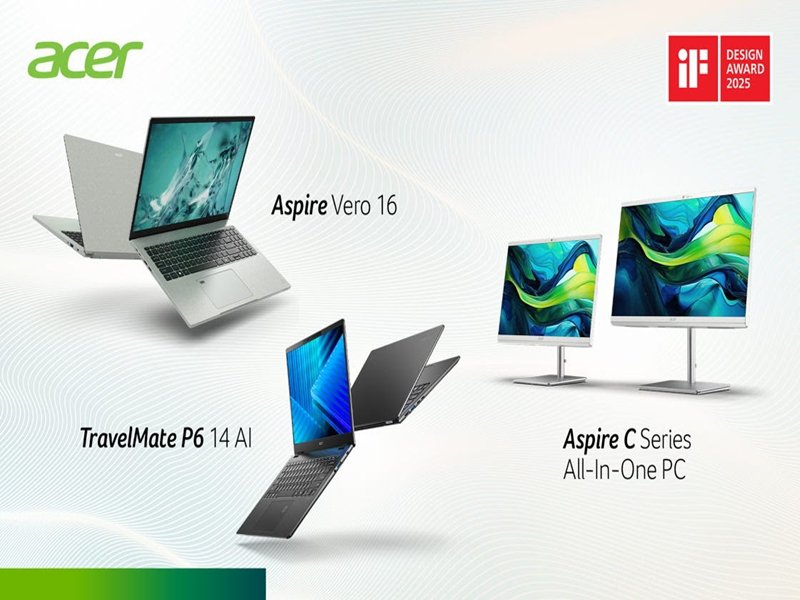 宏碁 TravelMate 和 Aspire電腦榮獲 2025 年 iF 設計獎。(宏碁提供)
