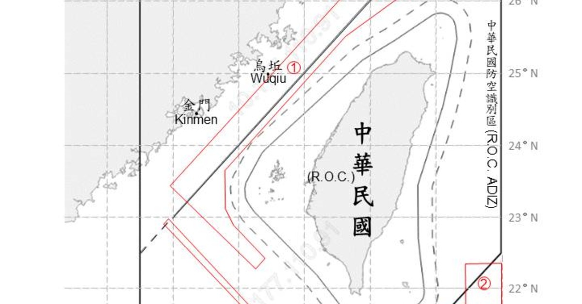 根據國防部「中共解放軍進入台海周邊空域活動示意圖」,18日上午6時至下午1時40分,在台灣海峽空域偵獲19架次中共主、輔戰機及無人機,14架次逾越中線;上午6時至下午1時25分,在西南至東部空域偵獲中共輔戰機及無人機2架次。