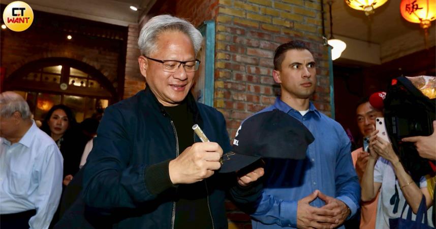 黃仁勳對於粉絲的簽名、合照來者不拒,展現親民風範。(圖/CTWANT)