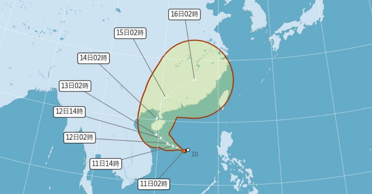 蝴蝶雖然不會直撲台灣,但仍會帶來劇烈雨勢。(圖/氣象署)