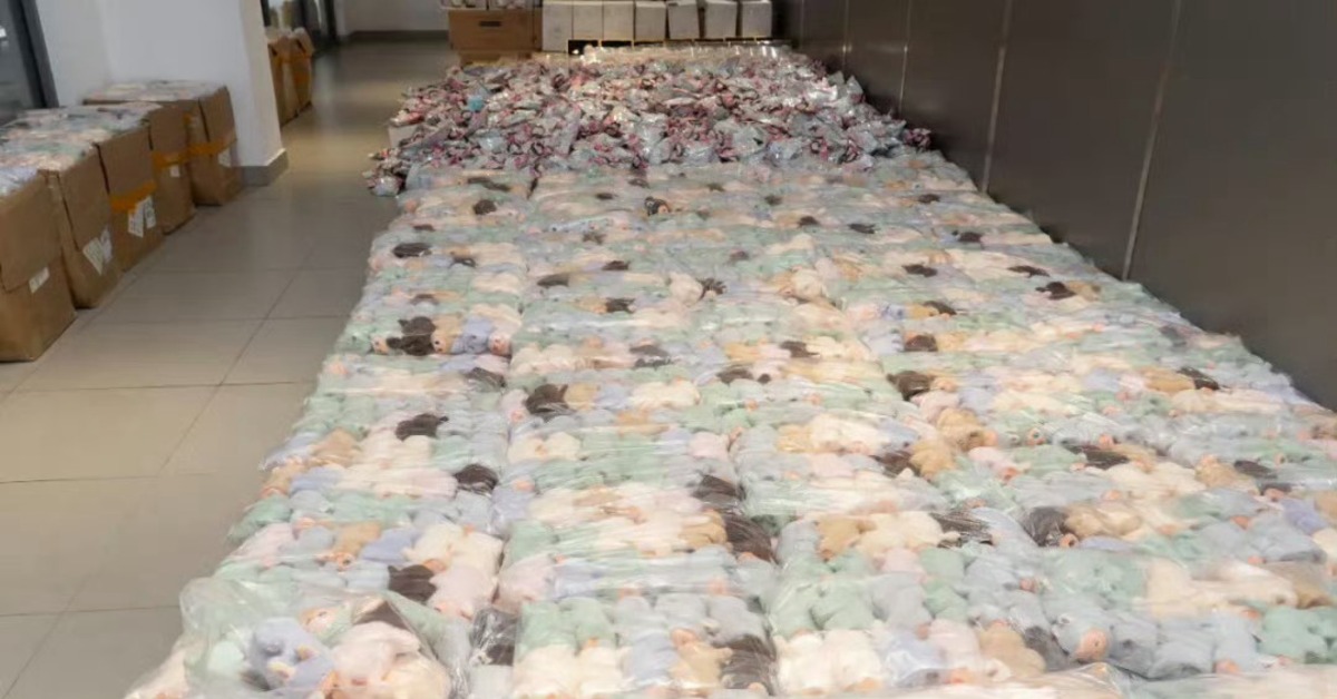 盜版「Labubu」氾濫成災!廣東港珠澳大橋海關日前查獲高達20,599件仿冒潮玩「Lababa(拉粑粑)」,這些仿品除了長相誇張「歪臉歪眼」,還會唱歌、跳舞甚至邊唱邊扭,現場畫面讓海關人員又氣又笑。