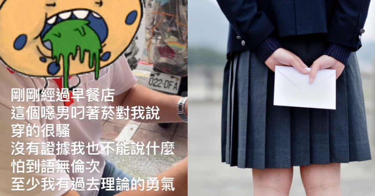 一名女子日前在threads上表示,自己穿著高中制服走在路上,經過一間早餐店時,卻有一名正在吃早餐的房仲,看著她的眼睛稱「穿得很騷」,讓她氣得上前理論,對方卻反嗆她「書都讀到哪裡去了?我又沒指名道姓」,還裝傻表示「看著妳就是說妳嗎?」女子最終也只能無奈離開。
