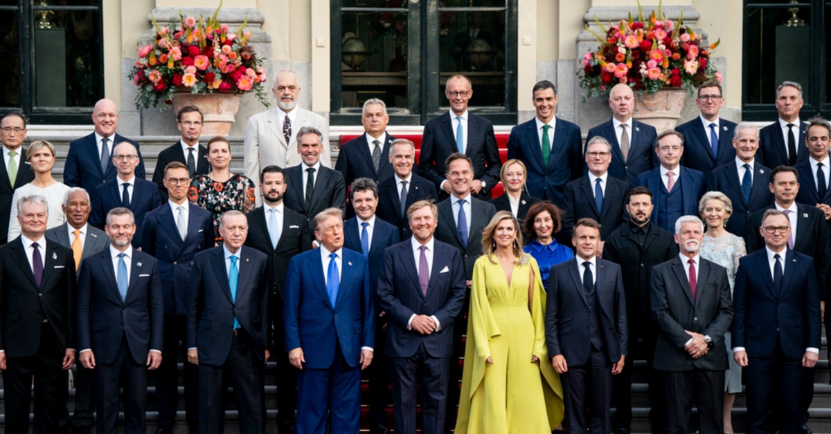 荷蘭國王、王后,以東道主身分,和到訪的北約成員國領袖大合照,而這場北約峰會,因為受到以伊衝突影響,格外受到矚目,美國總統川普,也在前往峰會途中,重申不會要求伊朗改變政權。