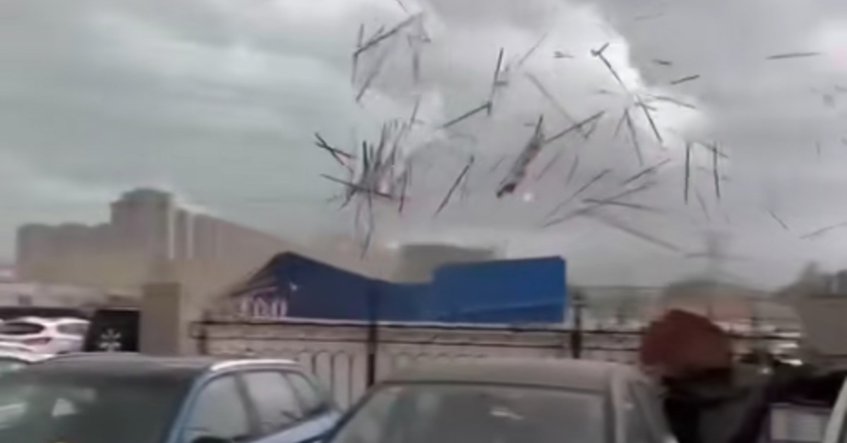 被狂風撕碎的大型廣告牌碎片高速在空中亂飛,好像萬箭齊發,砸到旁邊二手車行的辦公室,幸好當時目擊民眾是躲在屋內,否則可能遭到波及。不過現場多輛轎車停在戶外就被砸毀,很難避免。
