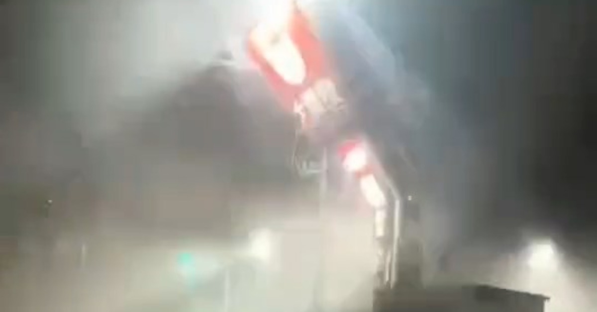 台南佳里區大潤發招牌被吹斷。(圖/翻攝自記者爆料網)