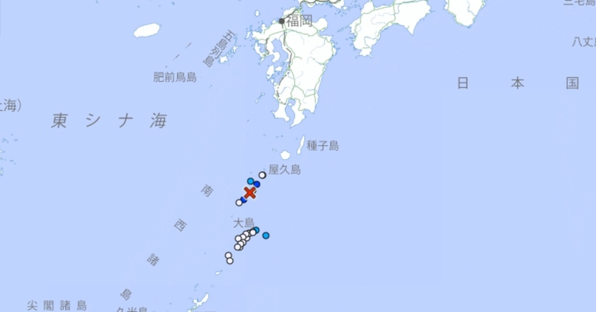 根據日本氣象廳資訊,日本鹿兒島凌晨至今已經發生86起地震,其中當地時間14時1分和14時7分分別發生規模4.8、規模5.4的地震,且最大震度都來到5強,震源深度皆為20公里,震央位於吐噶喇列島近海。