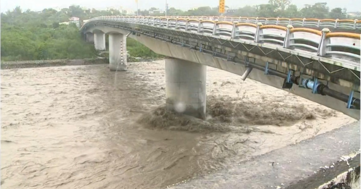 高雄荖濃溪暴漲。(圖/東森新聞)