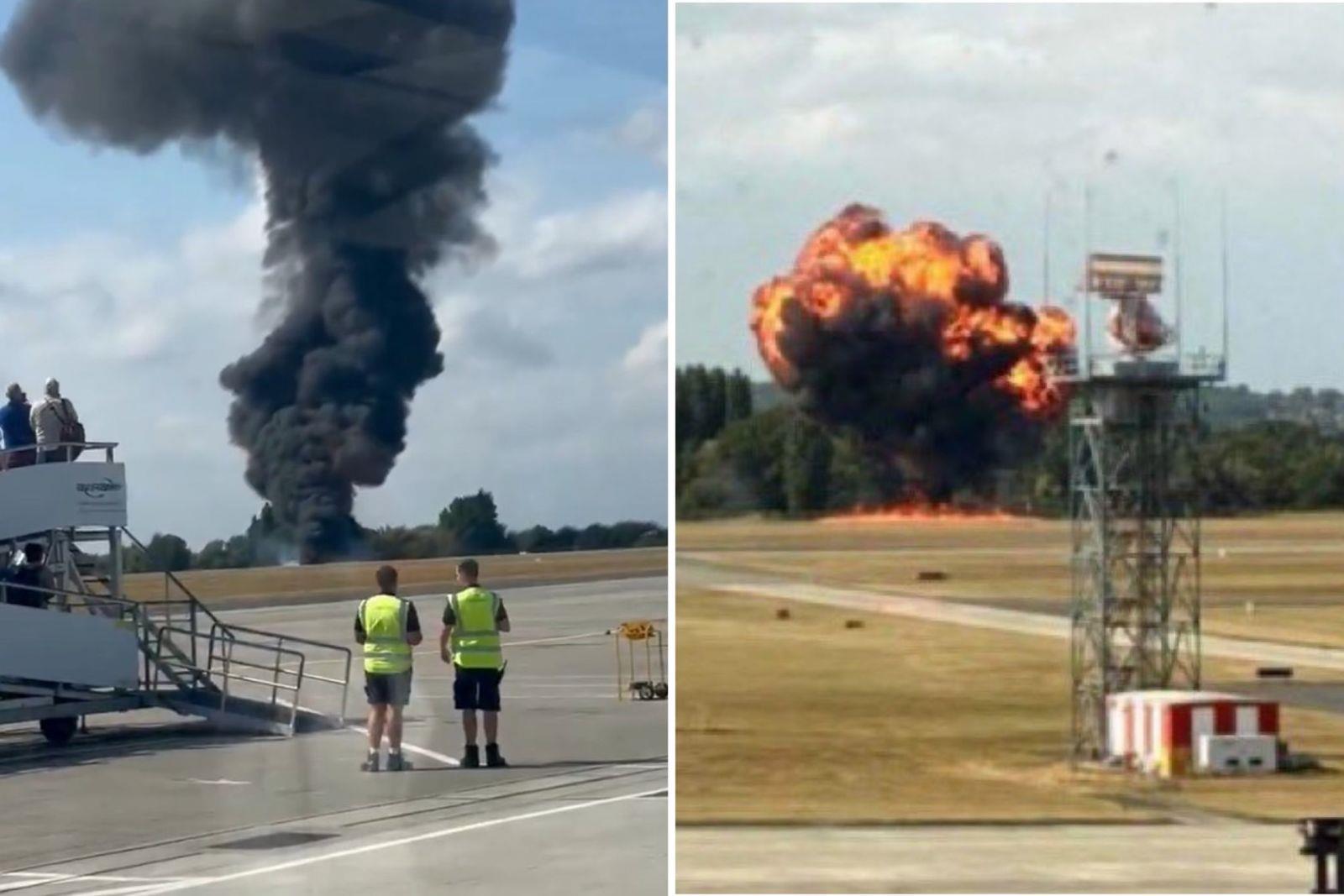 小飛機機師才微笑揮手回應民眾,未料才剛起飛墜毀倫敦機場爆炸,機上4人全罹難。(圖/翻攝自X@Agustina、@nabilajamal_)