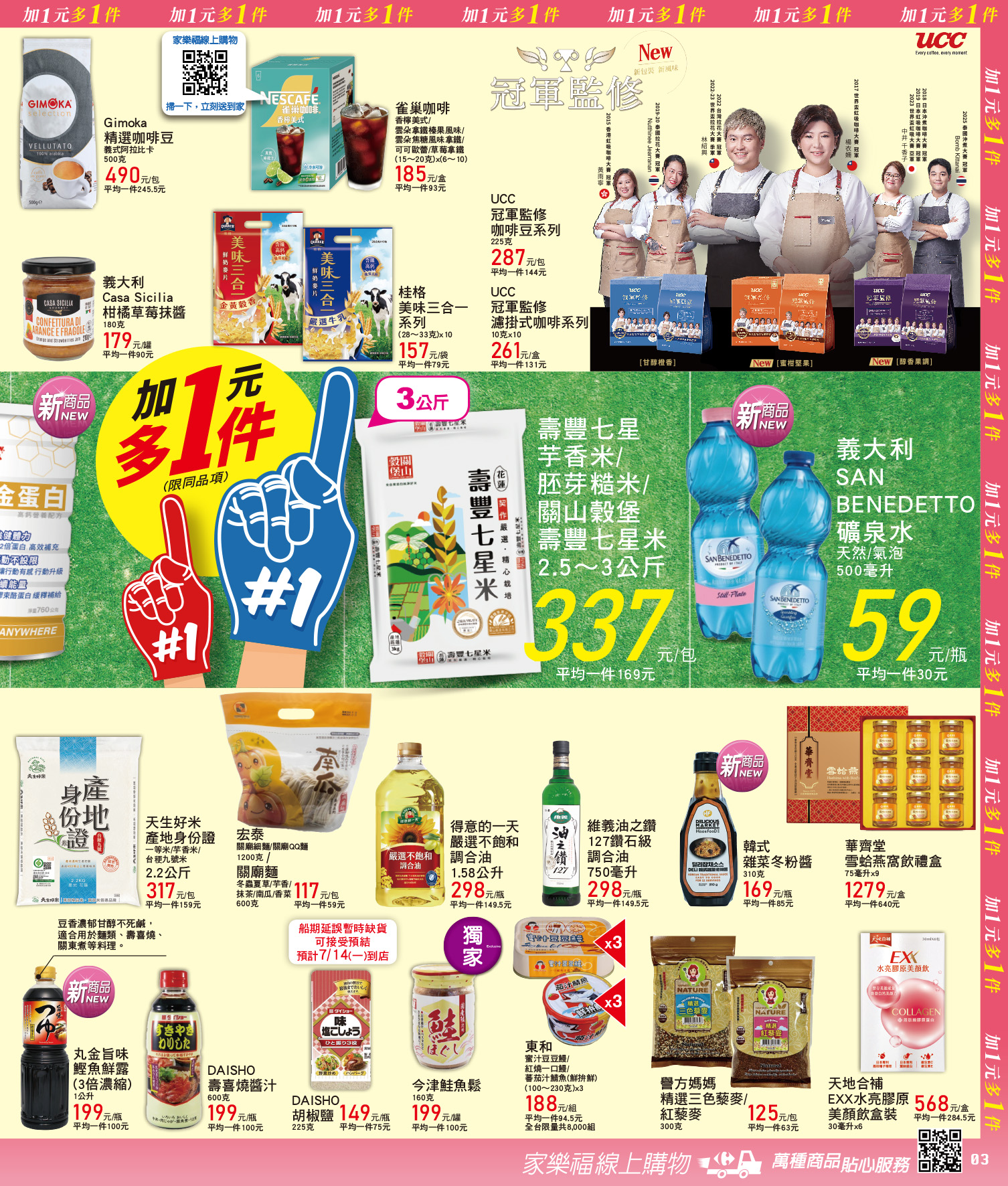 五省級/限時優惠!全聯買1送1、家樂福加1元多1件