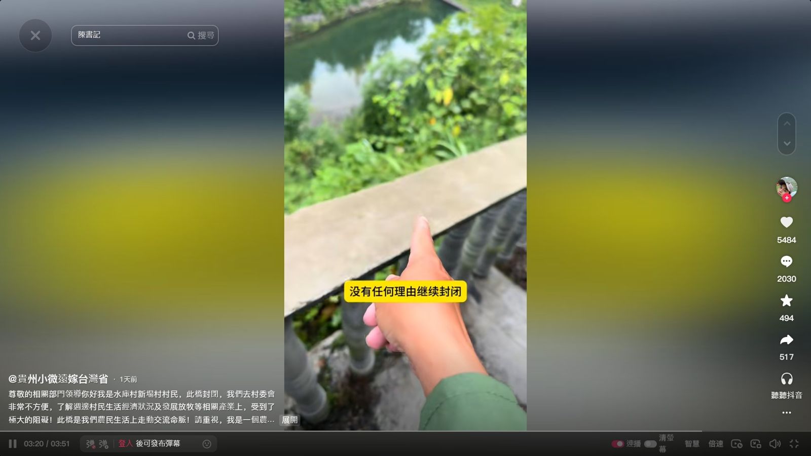 小微大膽再拍維權片,網友直呼「牛逼,你是什麼身分?叫領導者來找你」。(翻攝抖音@貴州小微遠嫁台灣省)
