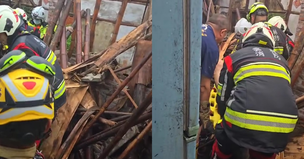 從民眾PO出的影片可見,民宅已成斷垣殘壁,搜救人員在一片狼藉中找到受傷的婦人,將她用擔架抬出送醫,現場也有熱心住戶和里民協助搬運木板等物品。
