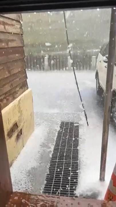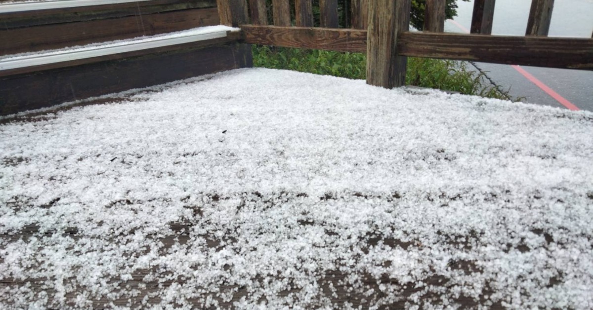 今日下午1時左右,合歡山松雪樓附近下起了大雨,隨後下起了冰雹雨,現場滿地冰珠,雪白一片。松雪樓經理表示,這場冰雹約持續了至少5分鐘,遊客也紛紛拿起手機拍照記錄。