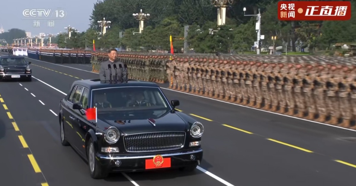 中國九三閱兵於今(3日)在天安門廣場進行,於上午9點在進行80響禮炮紀念抗戰勝利80週年,與唱國歌等儀式之後,正式開始一系列閱兵典禮活動。