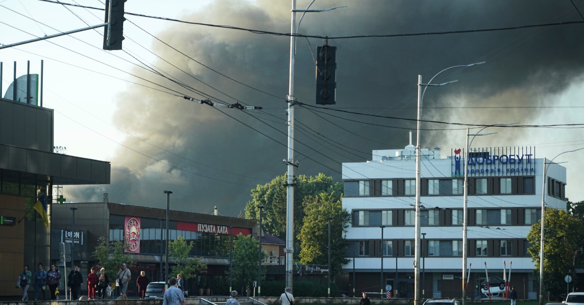 2025年9月7日星期日,俄羅斯襲擊烏克蘭基輔後,煙霧升起。 (圖/美聯社)