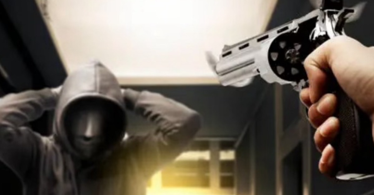 北加州,這女孩在自家門口前,看到一群人拿槍朝他過來搶劫,及時跑回屋內躲藏。