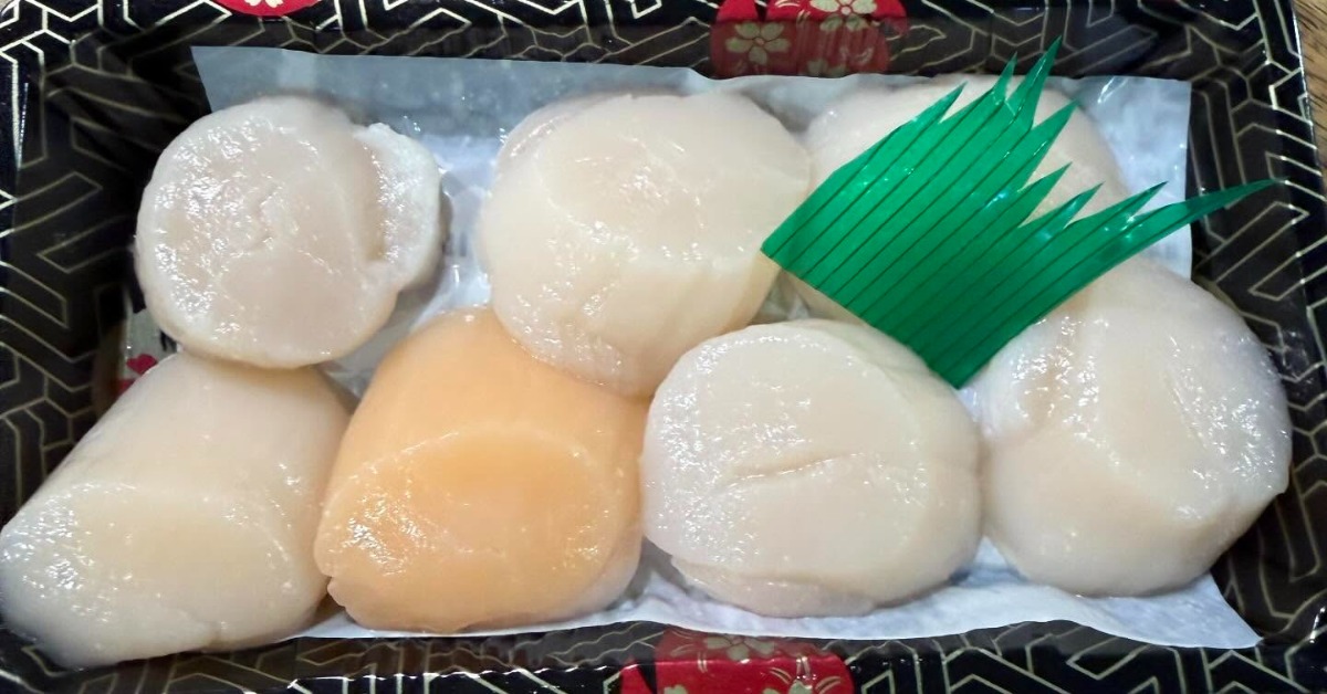 一顆顆新鮮的干貝,煎熟外表金黃微焦,讓人看了垂涎三尺,但有民眾買了一盒干貝回家後,卻發現萬白叢中一點橘,七顆干貝裡面,有一顆竟然是橘色的,他擔心這顆橘干貝,吃下肚可能會有問題,急忙拍照回傳詢問店家,這能吃嗎,沒想到業者直接霸氣說免單,因為這位客人撿到寶了。